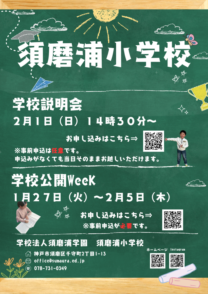 ・令和9年度新入学にかぎらず,令和8年度新1~5年生への転入も受付中です。ご検討の方は是非お越しください。